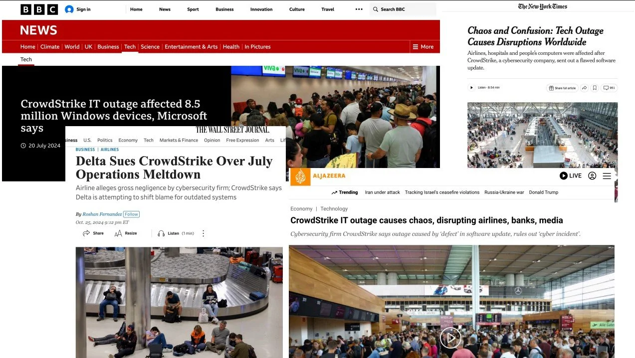 ‘The global IT outage: As it happened’, Financial Times, July 19, 2024, https://www.ft.com/content/9457f44b-7b6e-473e-bbb6-8b1f381d458b#post-46241a9b-d486-4c5f-9607-90c7a1e46acc. Luettu 15.2. 2026.